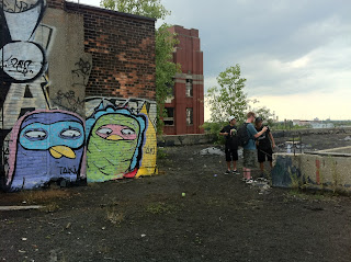 My gal Dee visited Detroit over this last week, and she and her man were able to give the community the gift of street art. I love the colors they chose to use; their characters they used just bring life and a sense of vibrancy that would otherwise be missing on the bleak walls of the abandoned buildings they worked on. Here are a few picture of Toki's and Stink's work. Hope to see more of this soon!